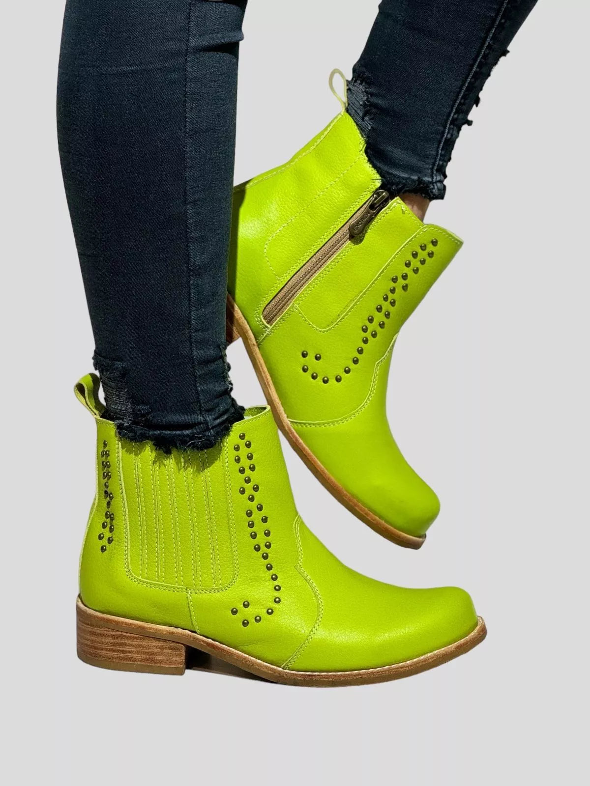 Precio regular $109.990Precio en oferta $109.990 Precio regularPrecio unitario / porUn botín urbano con detalles que marcan la diferencia. Confeccionado en cuero beige y decorado con delicadas tachas doradas, este modelo combina funcionalidad y estilo. Su...