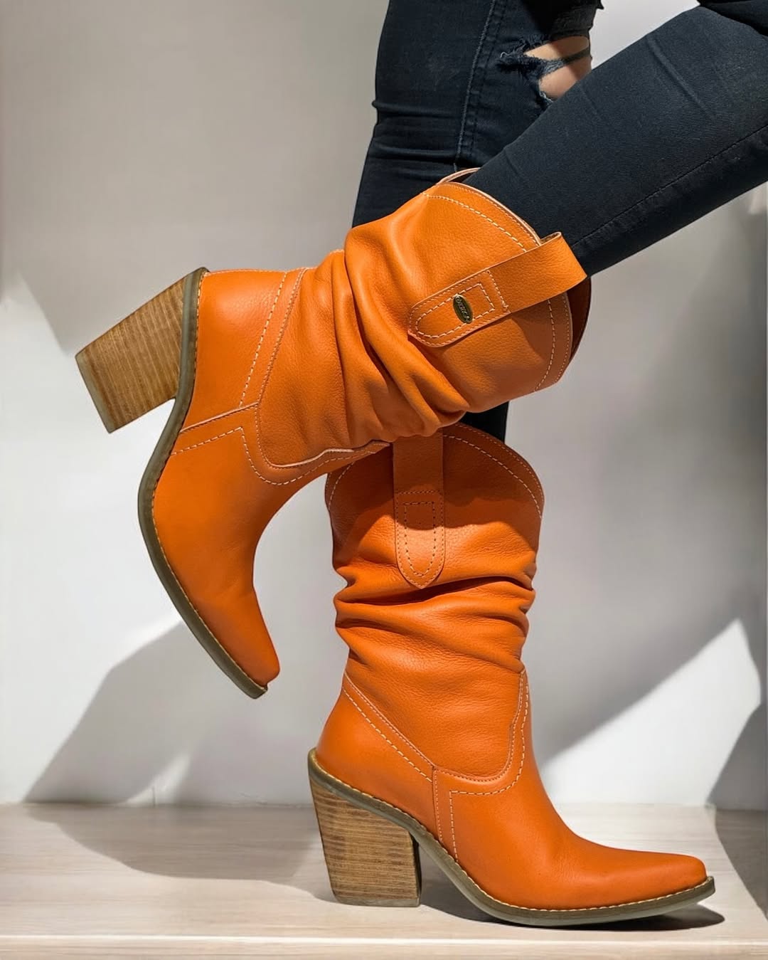 Precio regular $149.990Precio en oferta $149.990 Precio regularPrecio unitario / porBota Maite nacional en cuero, elegante y fresca. Punta puntiaguda, suela de madera, taco de 8 cm y caña de 29 cm. Perfecta para looks sofisticados...