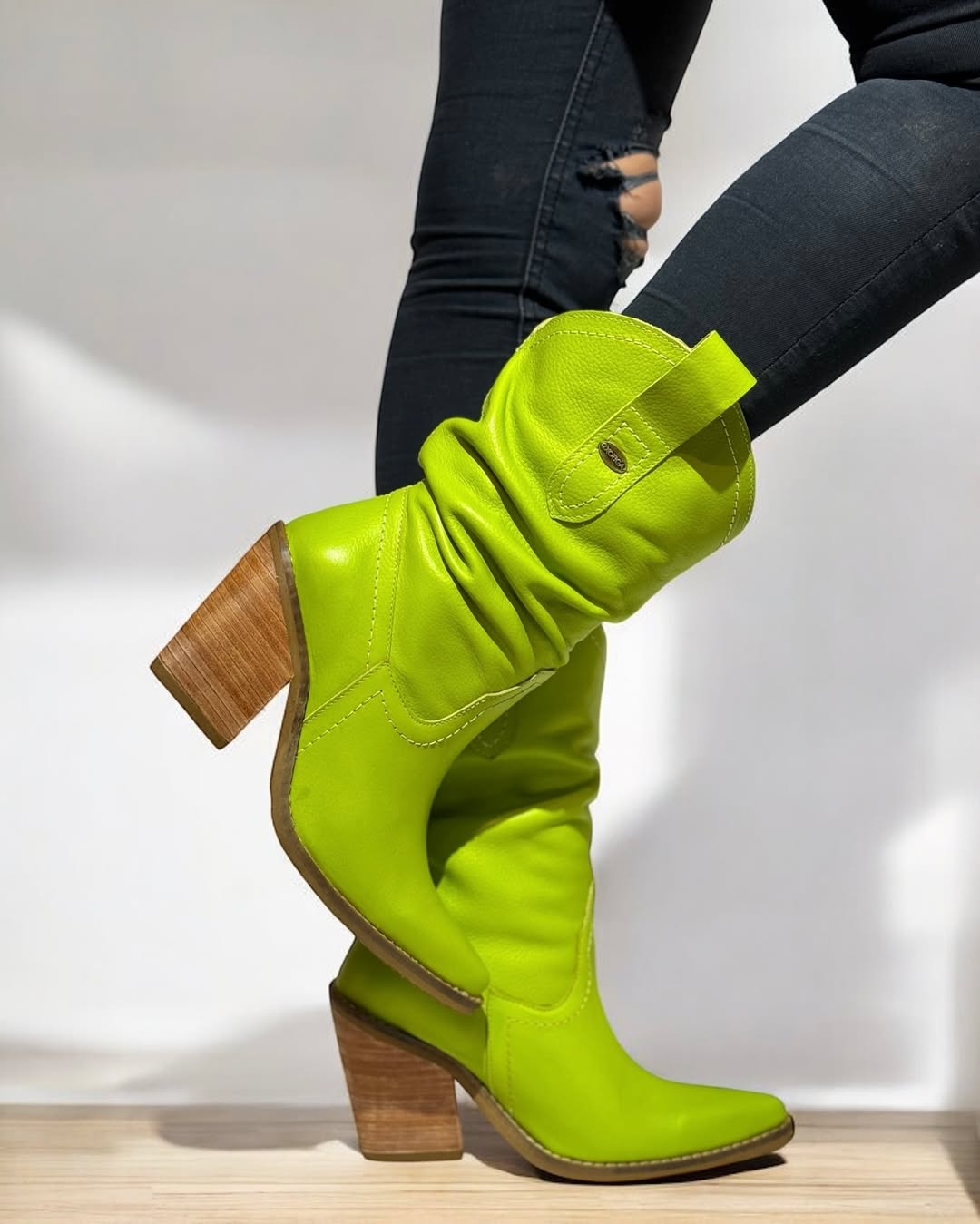 Precio regular $139.990Precio en oferta $139.990 Precio regularPrecio unitario / porBota Lina en cuero nacional, elegante y sobria. Punta puntiaguda, suela de madera, taco de 10 cm y caña de 16 cm que estilizan la figura....