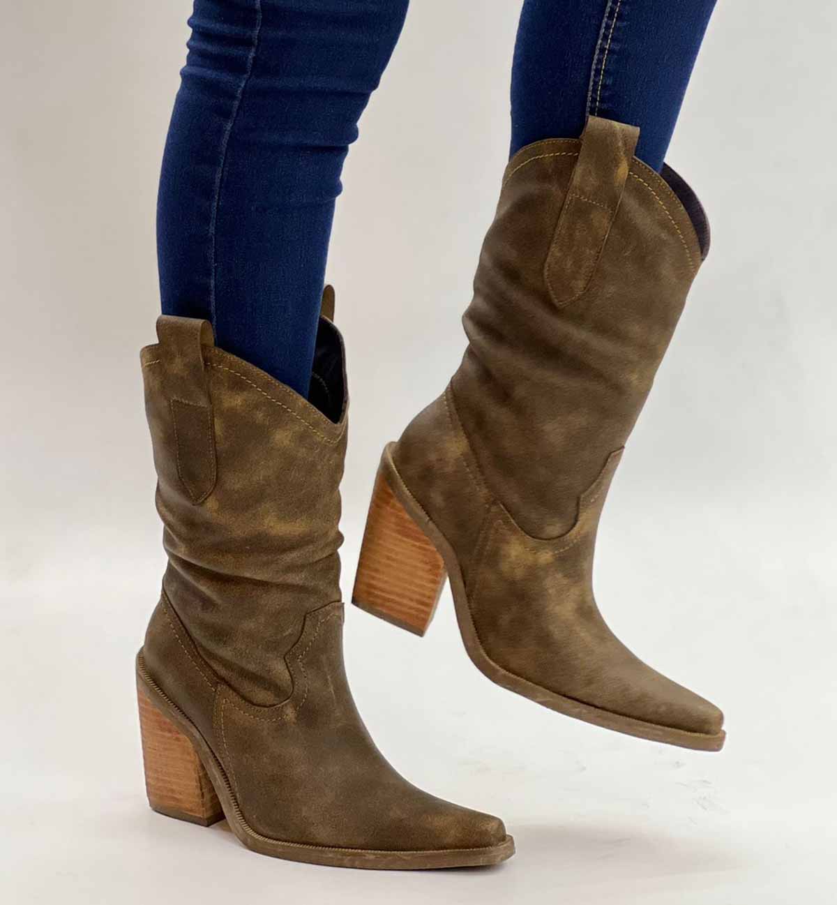Precio regular $149.990Precio en oferta $149.990 Precio regularPrecio unitario / porUn clásico con actitud. Esta bota de caña media estilo occidental combina un acabado envejecido con diseño arrugado, aportando un aire rústico y lleno de carácter....