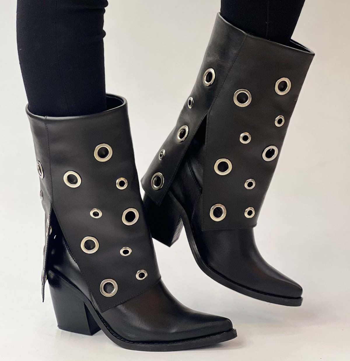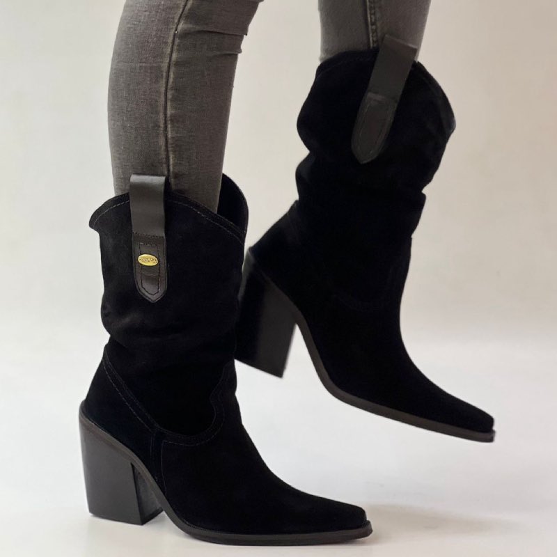 Precio regular $179.990Precio en oferta $179.990 Precio regularPrecio unitario / porUna texana con personalidad única. Fabricada en cuero gamuzado negro, esta bota destaca por su detalle de flecos laterales y estrella dorada, aportando un toque divertido...