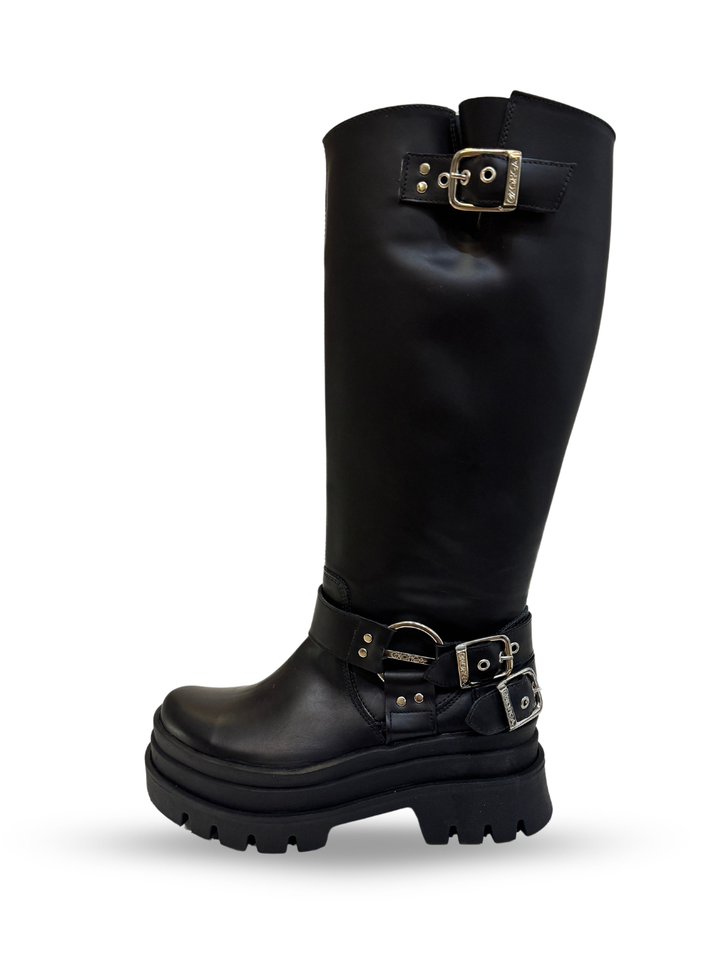 Precio regular $149.990Precio en oferta $149.990 Precio regularPrecio unitario / porBota de cuero negro, con suela de goma flexible, taco de 7 cm y plataforma de 7 cm. Punta redonda que prioriza el confort sin sacrificar...