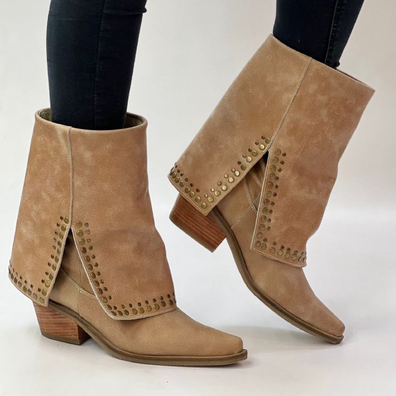 Precio regular $139.990Precio en oferta $139.990 Precio regularPrecio unitario / porEsta bota estilo texana en tono taupe es un clásico renovado con detalles que marcan tendencia. Confeccionada en cuero natural tipo gamuza, su diseño incluye perforaciones...