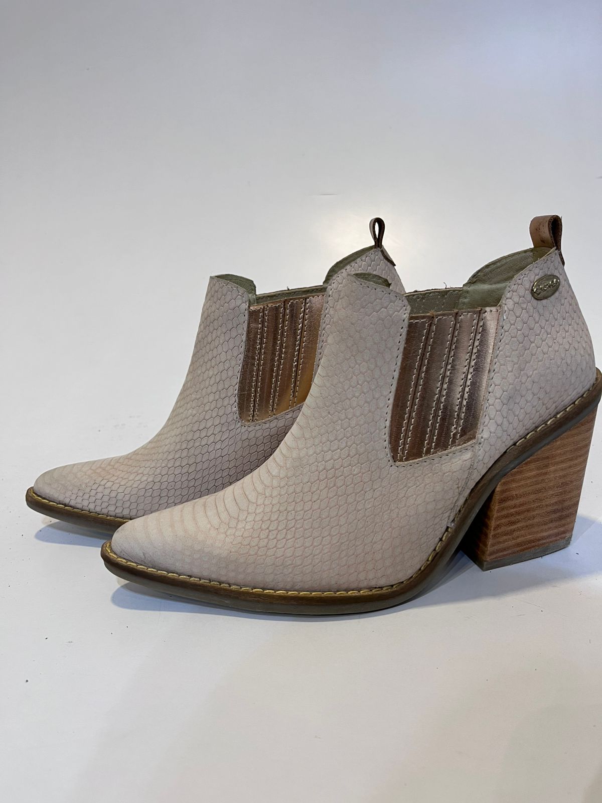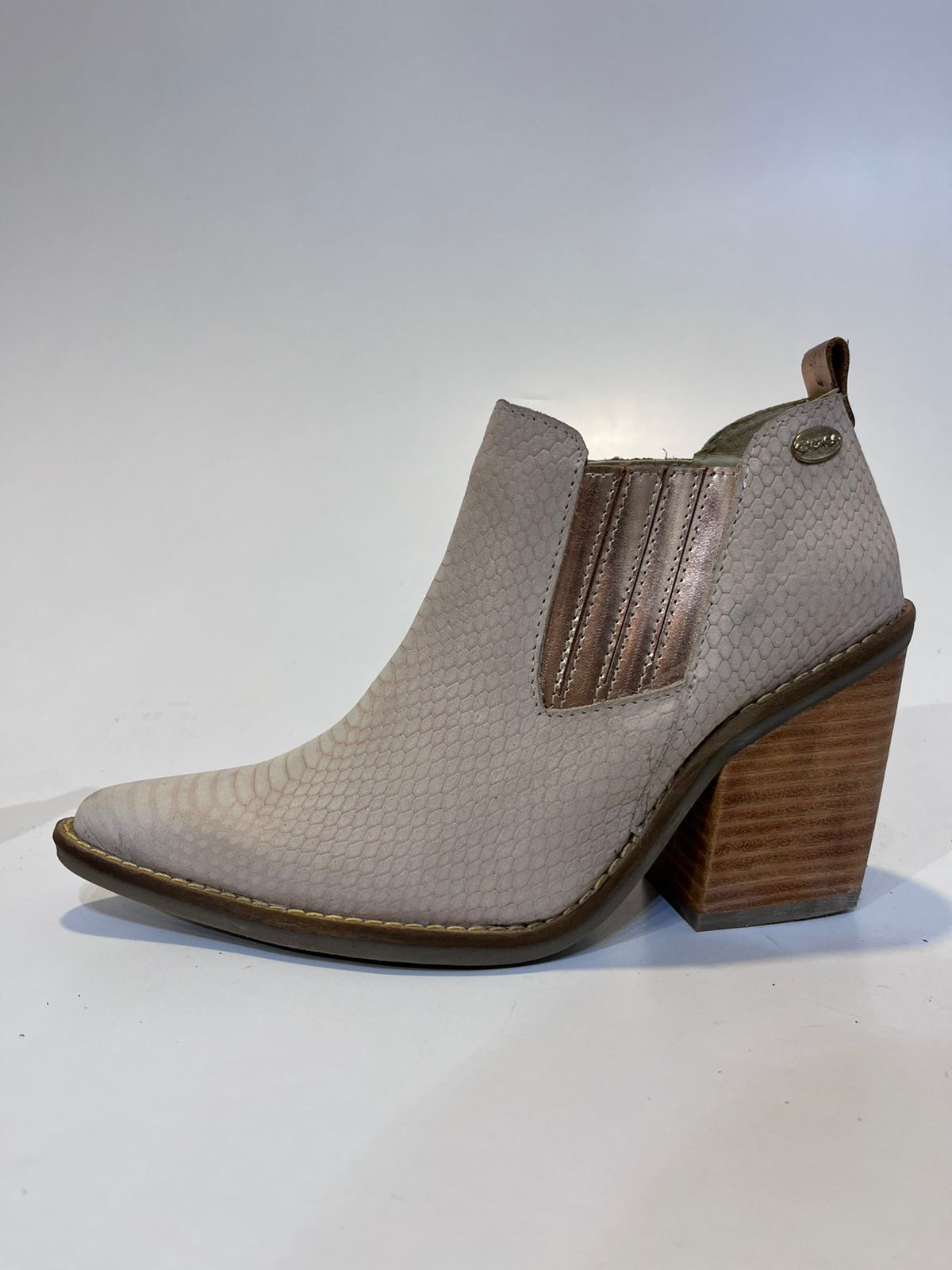 Precio regular $179.990Precio en oferta $179.990 Precio regularPrecio unitario / porUn ícono occidental con destellos de glamour. La bota Emily combina textura tipo reptil en tono dorado con detalles beige que realzan su diseño texano. Su...