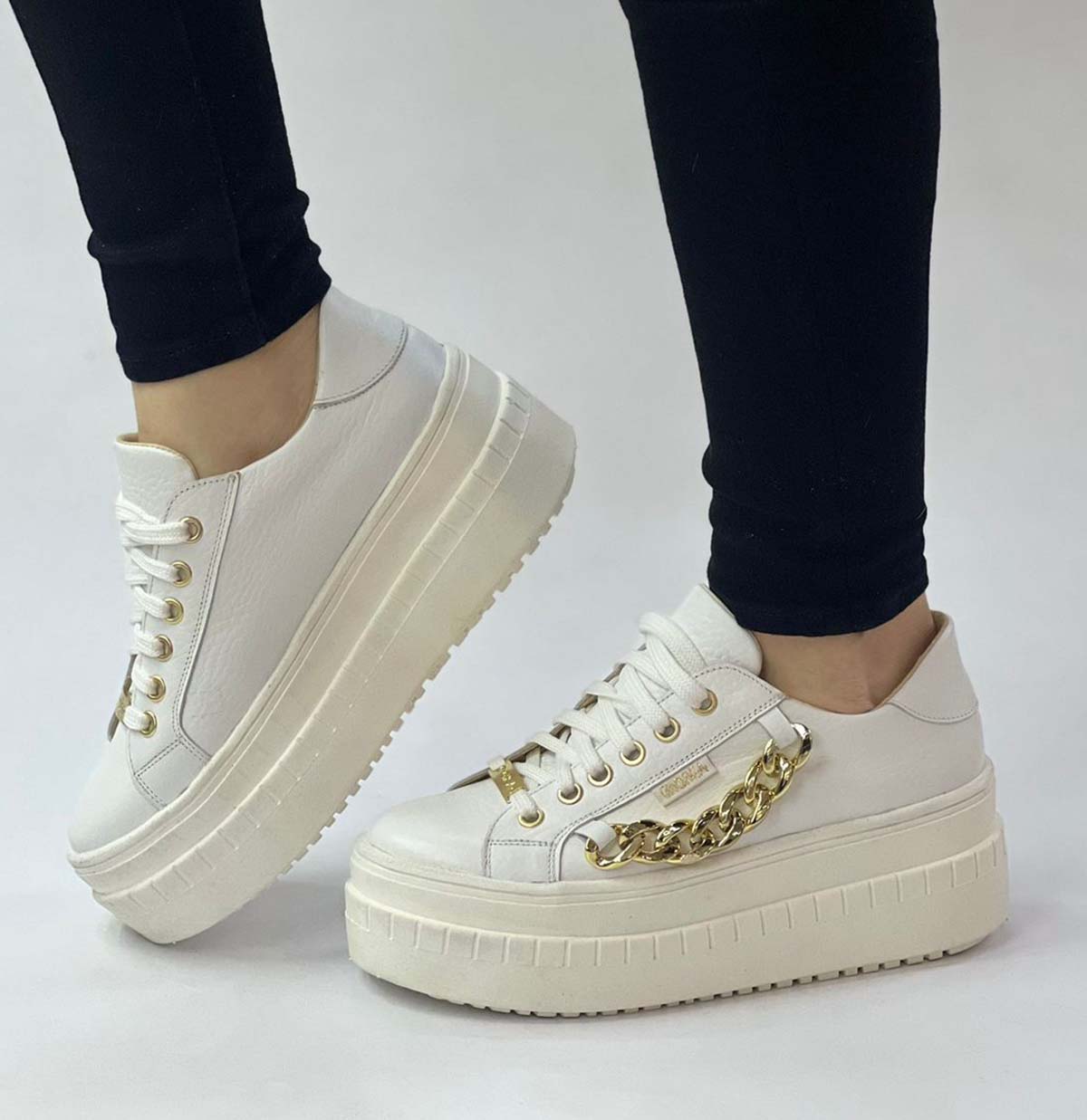 Precio regular $99.900Precio en oferta $99.900 Precio regularPrecio unitario / porZapatilla en cuero, ideal para looks modernos. Suela de goma flexible, taco de 3.5 cm y plataforma de 4 cm. Punta redonda. Perfecta para quienes buscan...