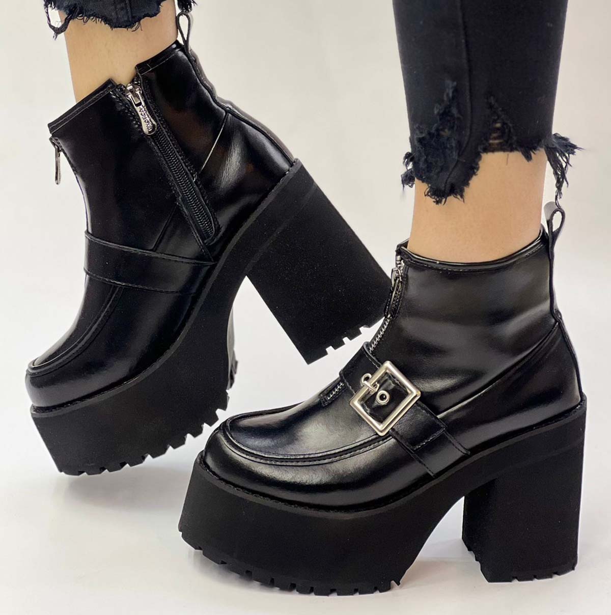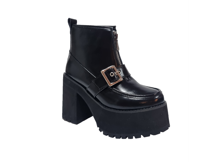 Botín de cuero premium, ideal para un look urbano y cómodo. Posee punta redonda, suela de goma antideslizante y cierre lateral para mejor ajuste. Su taco de 10 cm estiliza la figura, mientras que la plataforma de 7 cm proporciona comodidad al caminar. Perfecto para outfits de temporada. Colores disponibles: Negro.