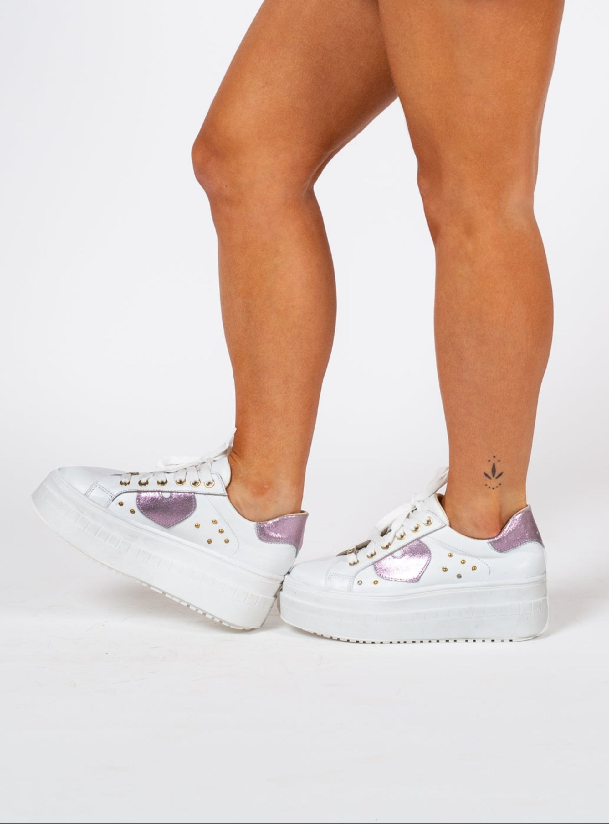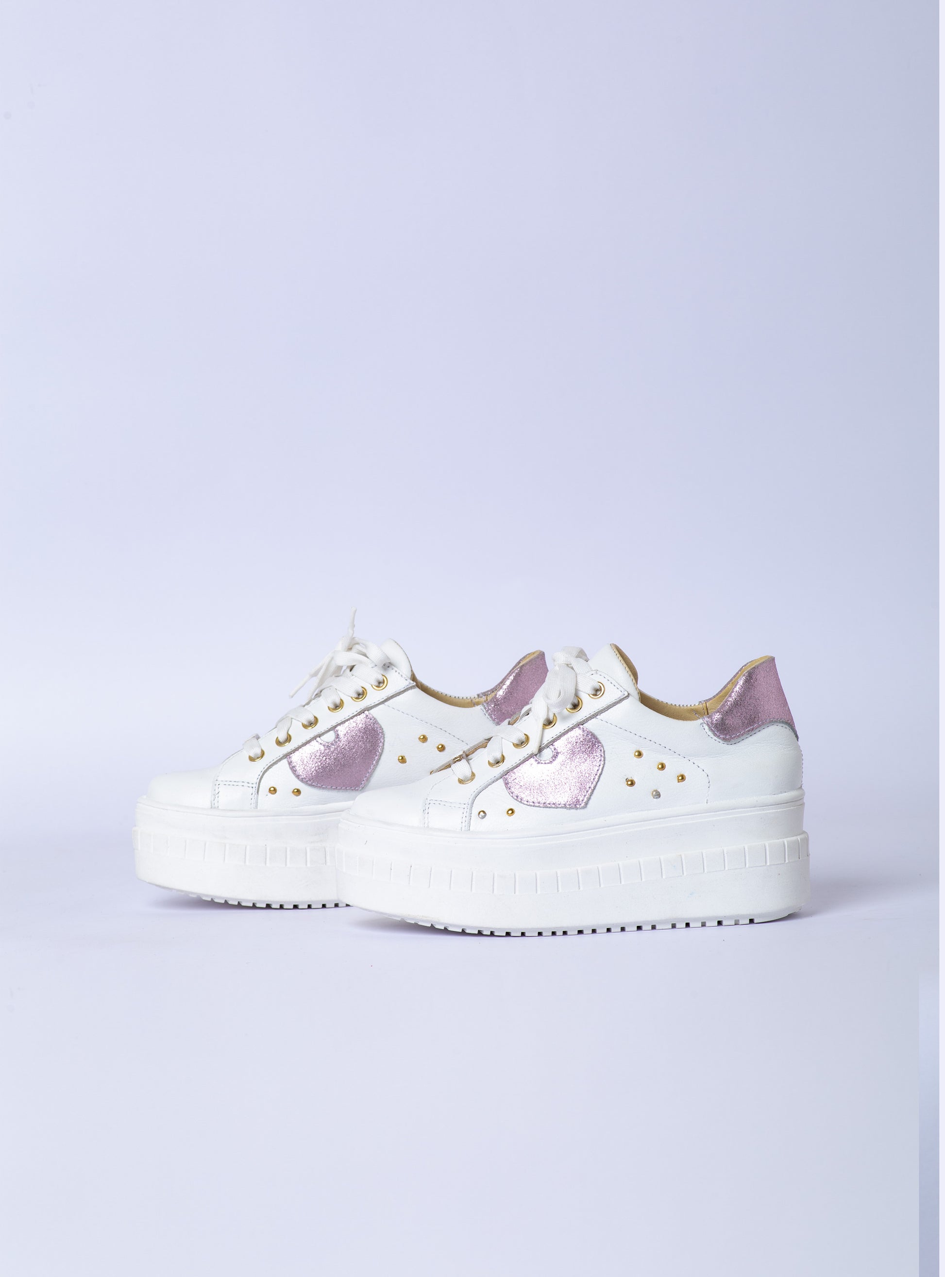 Zapatilla nacional en cuero blanco con detalles rosados. Suela de goma flexible, tacón de 7 cm y punta redonda. Moderna y femenina, perfecta para darle un toque fresco a cualquier outfit casual. Ideal para mujeres activas que buscan comodidad y estilo en sus actividades diarias. Colores disponibles: Blanco Rosa.