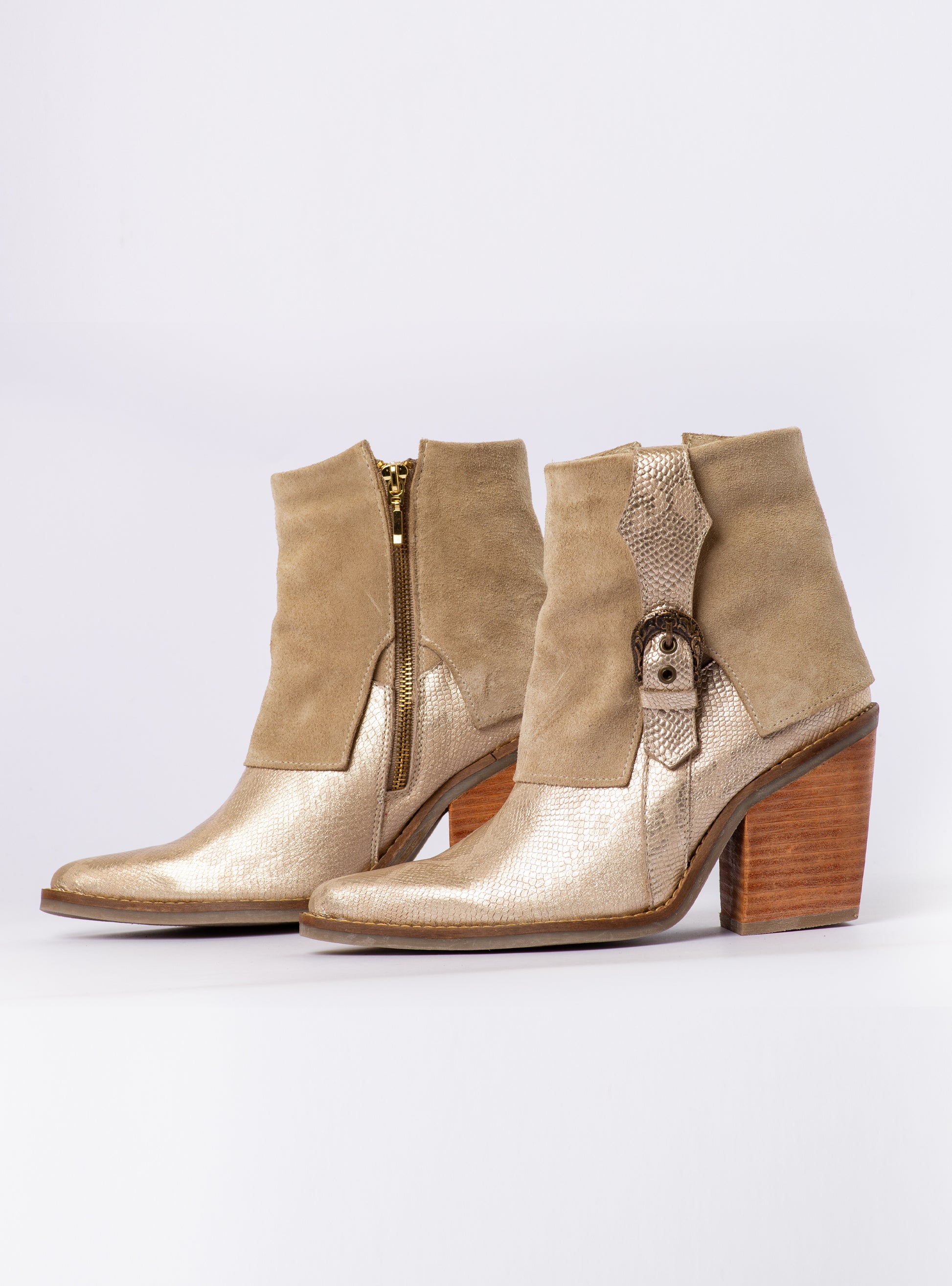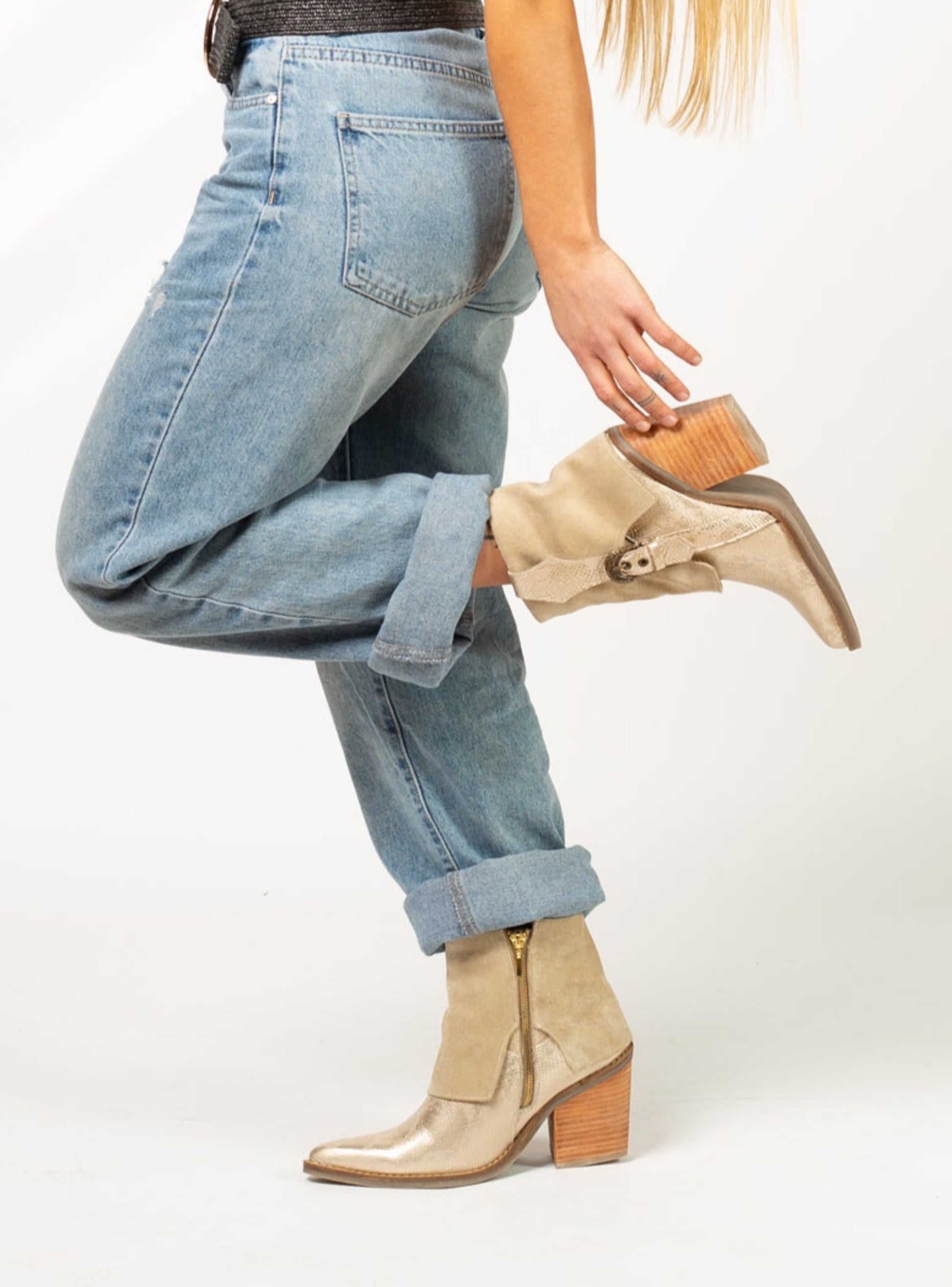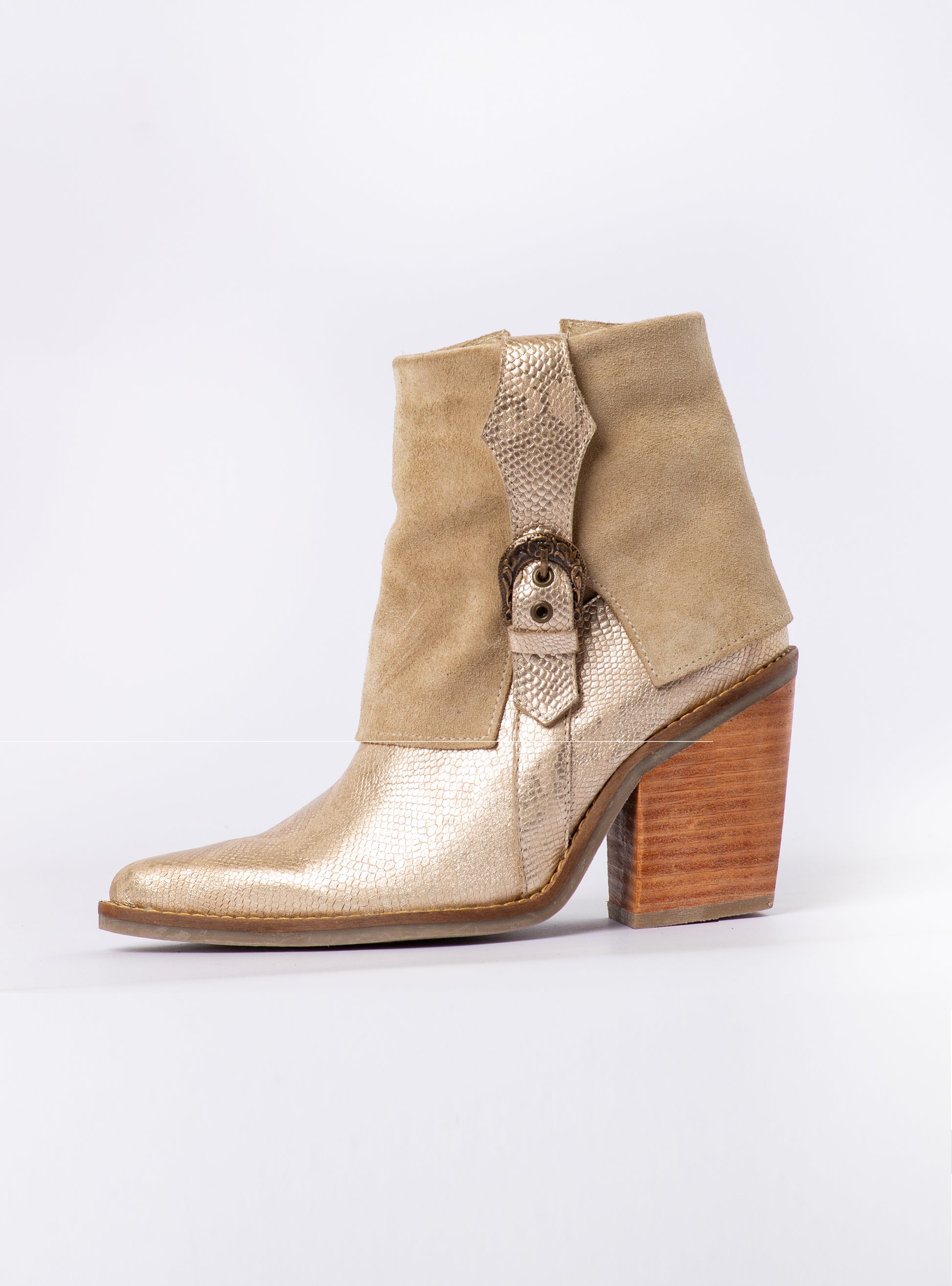 El botón Kiara en cuero es una explosión de color y elegancia. Con punta puntiaguda, suela de madera resistente y taco de 8 cm para una postura estilizada. Caña de 15 cm que abraza el tobillo. Producto nacional de alta calidad, perfecto para outfits atrevidos y modernos. Colores disponibles: Dorado Arena, Fucsia.