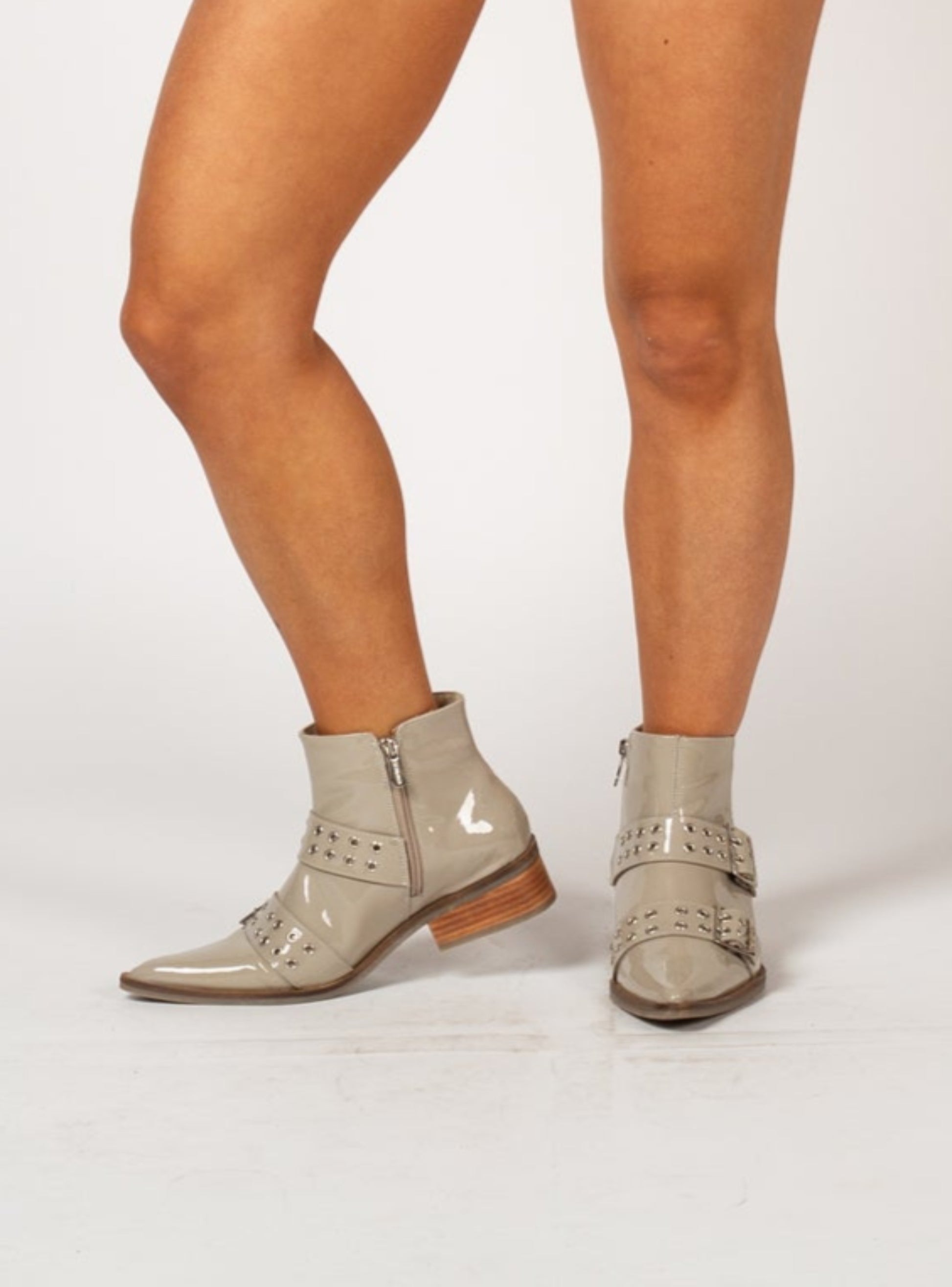 Botín Luciana en cuero nacional, cómodo y moderno. Punta puntiaguda, suela de madera, taco de 4 cm y caña de 12 cm. Diseño clásico que asegura elegancia y comodidad. Perfecto para combinar con jeans o vestidos, adaptándose a cualquier ocasión con su estilo refinado y atemporal. Colores disponibles: Charol Nude, Charol Negro.