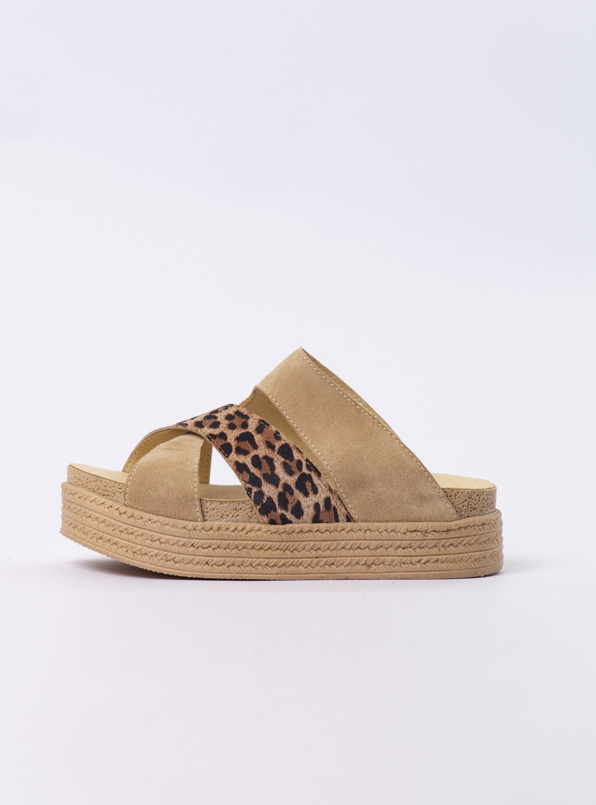 Una combinación perfecta entre comodidad y estilo atrevido. Su diseño en cuero gamuzado arena con detalle animal print aporta un toque moderno y versátil, ideal para destacar en cualquier look. La plataforma forrada en yute entrega altura y estabilidad, mientras que su planta garantizada asegura comodidad durante todo el día. Un imprescindible para quienes buscan frescura y tendencia en esta temporada. Colores disponibles: Reno Arena con Animal Print