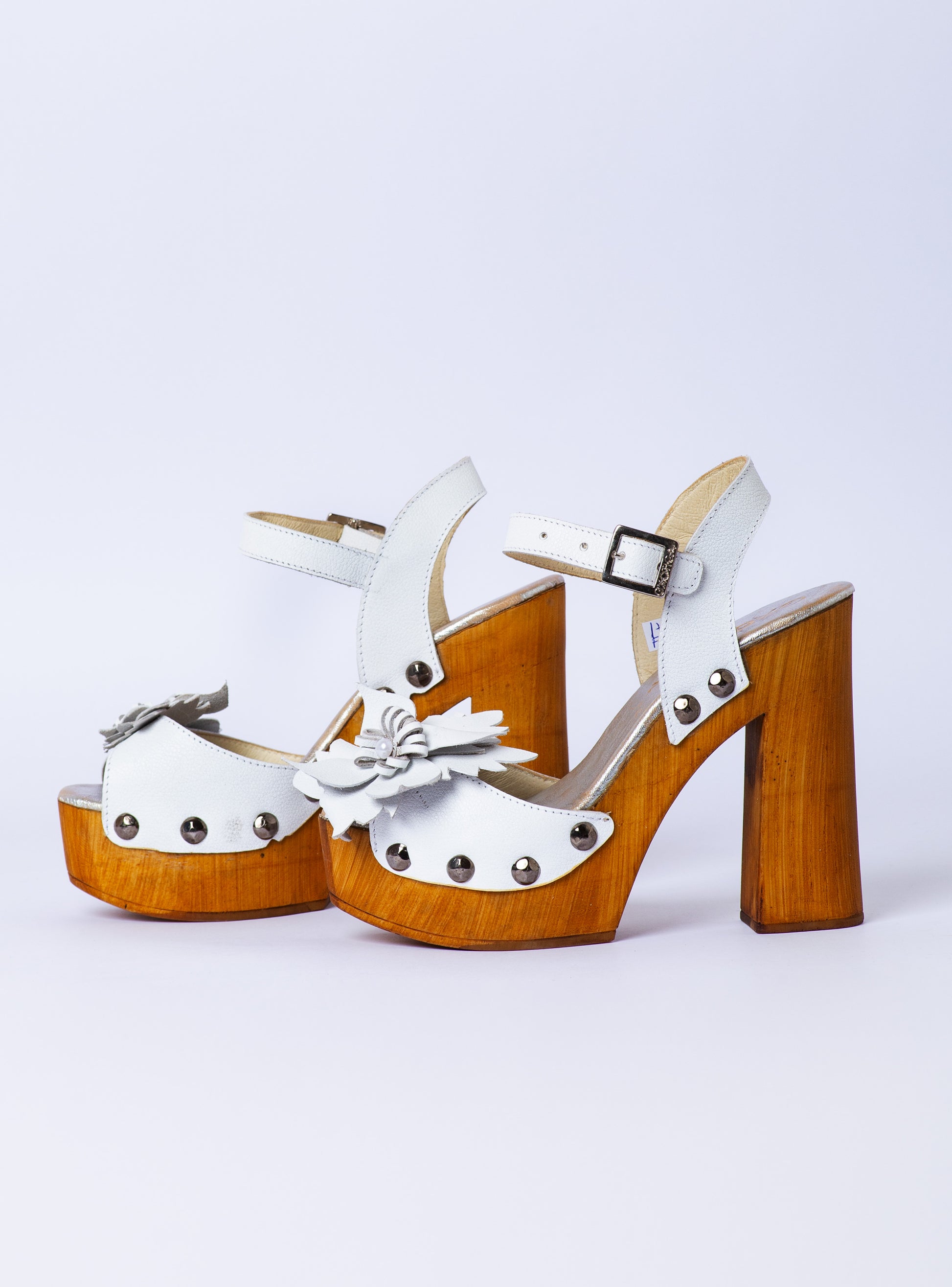 Confeccionada en cuero real de primera categoría , esta sandalia combina elegancia y resistencia. Su diseño en blanco puro con detalle floral resalta la feminidad y delicadeza, ideal para ocasiones especiales. El taco y plataforma de madera aportan comodidad, estabilidad y un estilo retro cómodo. Perfecta para brillar en la Colección Fiesta y Novias , acompañándote con glamour en cada paso. Colores disponibles: Blanco.